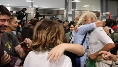 Quase 20 ativistas italianos que participavam da Flotilha Global Sumud chegaram ao Aeroporto de Fiumicino, em Roma, após serem libertados pelas…