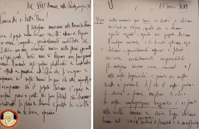 Os documentos foram localizados quando estavam prestes a ser leiloados por uma renomada casa de Turim, e as primeiras investigações confirmaram que as folhas continham anotações com a caligrafia de Mussolini, assim como a marca “M” no rodapé da última página, um monograma utilizado pelo próprio ditador.