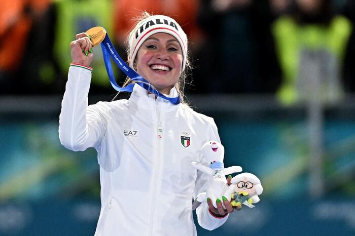 No dia do seu aniversário de 35 anos, a italiana brilhou nos 3000 metros da patinação de velocidade, terminou a prova com um tempo de 3min54s28 e também quebrou o recorde olímpico.