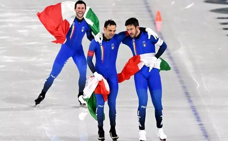 Os patinadores Davide Ghiotto, Andrea Giovannini e Michele Malfatti fizeram uma excelente prova na final da perseguição por equipes e derrotaram, com boa vantagem, os americanos Ethan Cepuran, Casey Dawson e Emery Lehman.