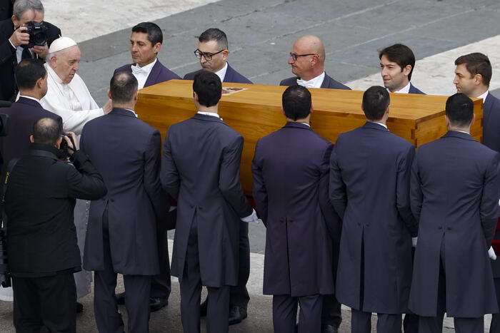 O esquife foi feito com revestimento triplo, sendo o primeiro de cipreste, o segundo de zinco e o terceiro de carvalho, e será sepultado nas criptas da Basílica de São Pedro, na antiga tumba de São João Paulo II, cujo corpo foi levado para a parte de cima do templo após sua beatificação, em 2011.